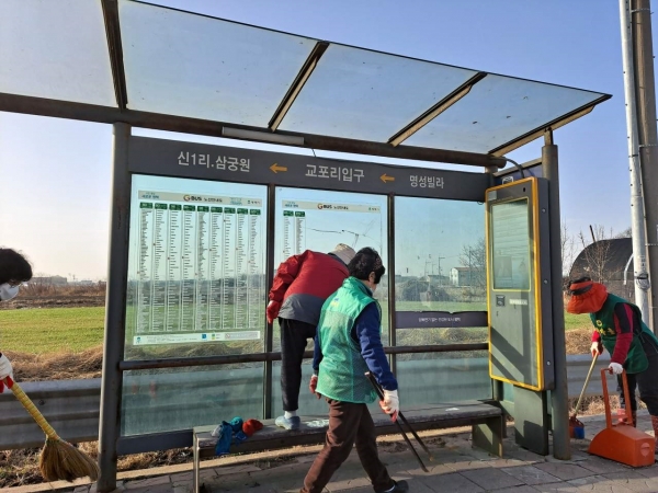[충청뉴스큐] 평택시 오성면 새마을부녀회에서는 지난 17일 코로나19 확산방지와 쾌적한 대중교통 환경을 위해 관내 40여 곳의 버스승강장 주변 방역 및 환경정비 활동을 실시했다.