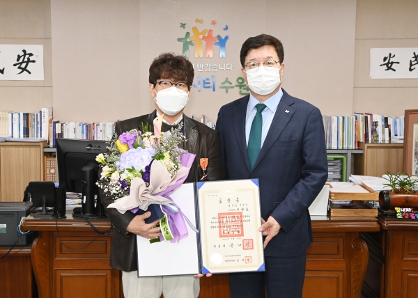 [충청뉴스큐] 수원시가 지난해 전국 최초로 도입한 ‘긴급차량 우선 신호시스템’을 구축·운영하는 데 이바지한 수원시 도시안전통합센터 이병호 주무관이 ‘제1회 적극행정 유공 정부포상’에서 근정포장을 받았다.