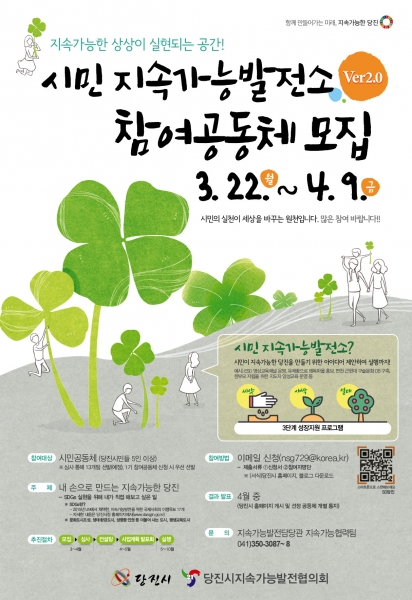 [충청뉴스큐] 당진시가 지속가능발전을 위한 시민주도형 실천사업인 ‘시민 지속가능발전소’의 제2기 참여 공동체를 모집한다.