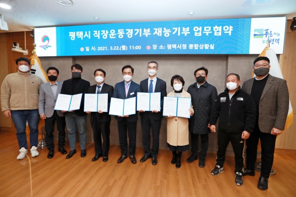 [충청뉴스큐] 평택시는 22일 시청에서 관내 지역학교 4개교와 지속가능한 재능기부를 위한 공동협력체계를 구축해 지역사회에 공헌하겠다는 재능기부 업무협약을 체결했다.