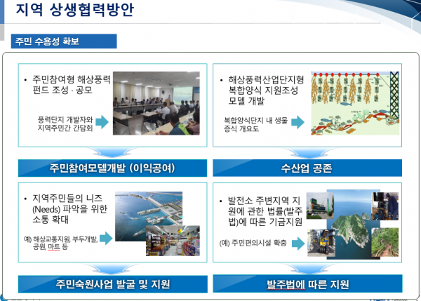 유준호 시 에너지정책과장은 4월에는 어업인들에 대한 설명회도 계획 중이라며 해상풍력 발전단지 조성사업은 지역주민, 어업인 분들과의 소통 · 공감을 통해 공존 · 상생하는 방향으로 나아갈 수 있는지가 성공적인 사업추진의 핵심일 것”이라며 “이번 설명회에서 해상풍력의 필요성과 상생방안 등에 대해 주민 ·어업인 분들의 여러 의견을 듣고 공존 · 상생 방안을 마련하겠다”고 말했다.