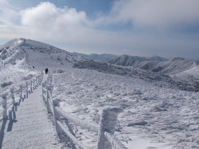 눈이 시릴 만큼 아름다운 설경에다 정상부근에는 나뭇가지마다 상고대가 만개하기 때문이다.