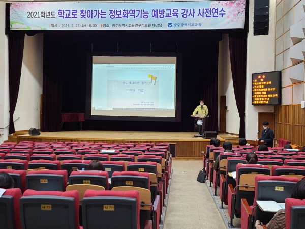 [충청뉴스큐] 광주시교육청이 지난 23일 광주교육연구정보원 대강당에서 강사단 91명을 대상으로 실시한 ‘학교로 찾아가는 정보화역기능 예방교육 강사단 사전연수’를 성료했다고 24일 밝혔다.