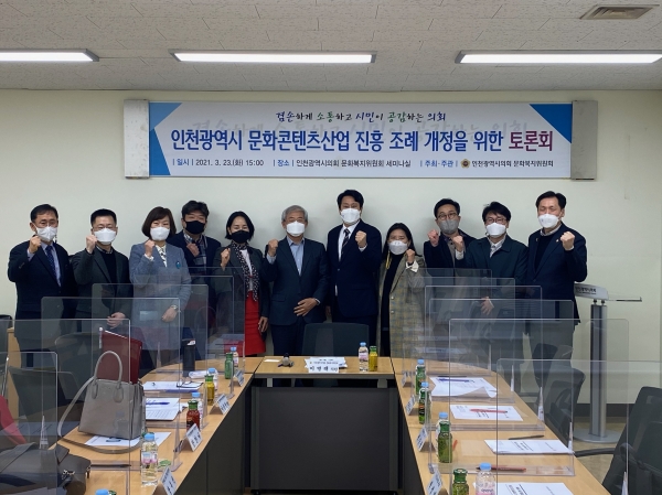 [충청뉴스큐] 인천광역시의회 문화복지위원회는 최근 문복위 세미나실에서 ‘인천광역시 문화콘텐츠산업 진흥 조례 개정을 위한 토론회’를 진행했다고 24일 밝혔다.