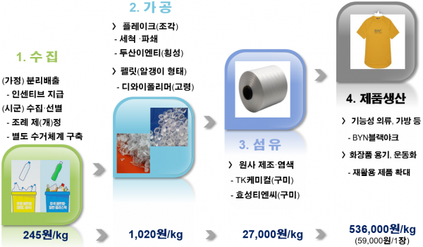 그 동안 강원도는 재활용품 수요확대를 위해 ㈜BYN블랙야크와 업무협약을 체결하는 한편 ‘강원도 자원순환 기본 조례’를 제정해 폐기물 재활용 사업 추진을 위한 근거를 마련했다.