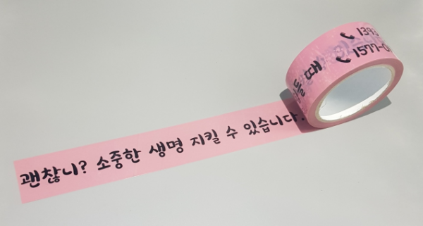 ‘생명 사랑 테이프’는 우체국 비치된 포장 테이프에 자살 예방 문구와 도움 정보를 인쇄해 택배 이용자들이 주변인들의 안부를 묻고 힘들 때 도움을 받을 수 있는 상담 전화번호를 안내하기 위해 제작됐다.