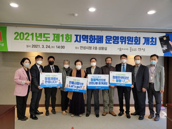 본 행사는 24일 2021년 제1회 안성시 지역화폐운영위원회 개최 후 진행됐으며 소상공인 및 기업과 함께 청렴 의식을 공유하기 위해 안성시 소비자 대표, 시장상인회, 소상공인 진흥공단 등 대표 위원들과 함께 분야별 청렴 피켓을 제작해 청렴에 대한 결연한 의지를 다지는 특별한 시간으로 진행됐다.