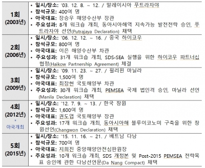 동아시아 해양회의는 동아시아 국가들이 모여 해양생태계 보호와 연안의 지속가능한 이용방안을 논의하는 자리로, 3년마다 개최된다.
