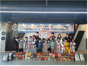 [충청뉴스큐]수노을태권도장이 25일 화성시 새솔동에 취약계층을 위한 식재료를 후원했다.