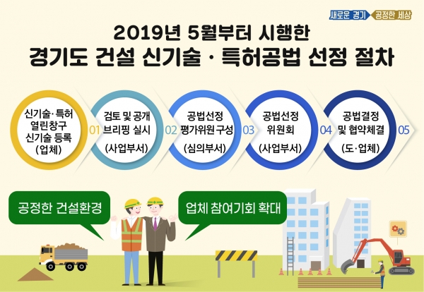 [충청뉴스큐] 경기도가 공정건설 환경 조성을 위해 추진한 ‘건설 신기술·특허공법 선정 제도’ 개선의 성과가 올해 4월부터 전국적으로 확대된다.