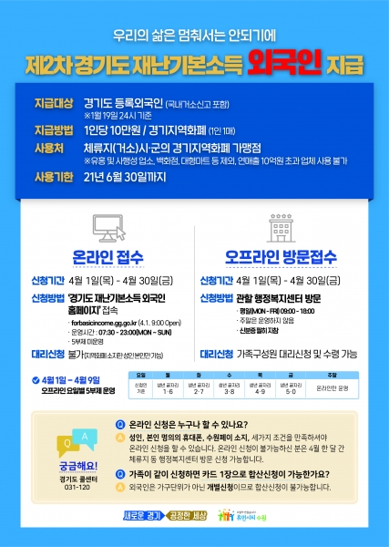 [충청뉴스큐] 수원시를 비롯한 경기도에 거주하는 외국인에게 1인당 10만원을 지급하는 ‘제2차 경기도 외국인 재난기본소득’ 신청이 4월 1일 시작된다.