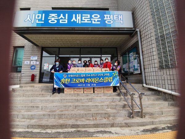 [충청뉴스큐] 평택시 중앙동행정복지센터는 국제라이온스협회 354-B지구5지역2지대 송탄크로바라이온스클럽으로부터 지난 26일 코로나19로 어려운 지역주민을 위한 전통생과자 50박스를 기탁받았다.