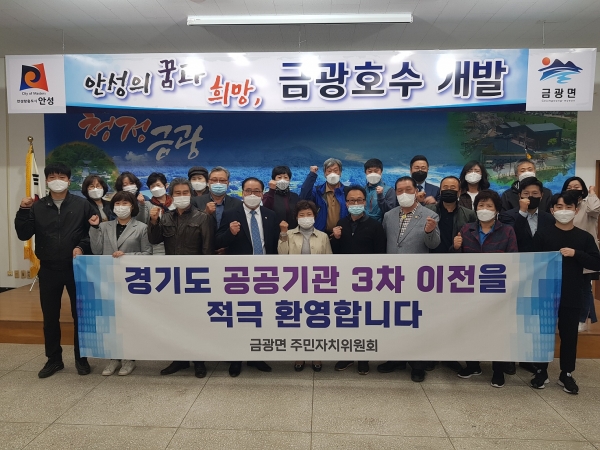 한영순 주민자치위원장은 “지난 1,2차 공공기관 이전에는 안성시가 선정되지 못했으나 3차 공공기관 이전에는 반드시 안성시가 포함되기를 바라는 금광면 주민자치위원회와 금광면 모든 주민의 염원을 담아 응원전에 총력을 기울이겠다”고 말했다.