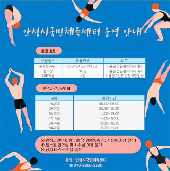 [충청뉴스큐] 안성시시설관리공단에서 운영하는 안성시국민체육센터는 수영장 증축 사업이 완공됨에 따라 4월 5일부터 재개장한다고 밝혔다.