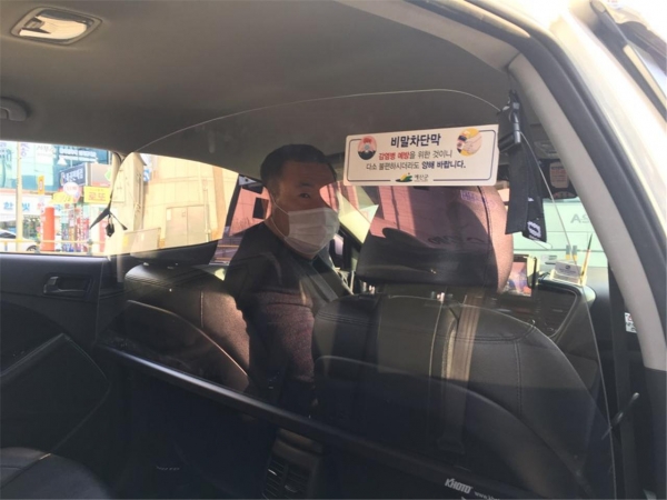군은 지난 1월 도내 최초로 관내 택시 전 차량에 한 대 당 11만5000원의 사업비로 비말차단막을 설치하고 이른바 ‘방역택시’를 운행함으로써 인근 시·군 및 동종 업계의 부러움을 사는 동시에 많은 문의를 받았으며 교통약자를 위한 장애인콜택시 7대에도 비말차단막을 우선 설치한 바 있다.