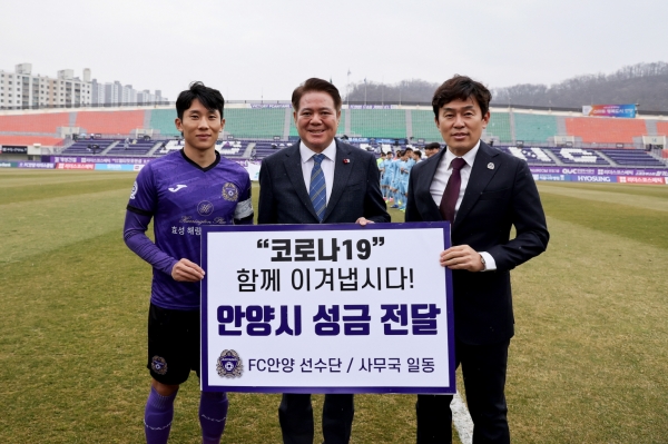 FC안양 선수단과 사무국은 코로나19로 어려움을 겪고 있는 안양 시민들을 위해 후원금 2,300만원을 모은 뒤 안양시에 전달했다.