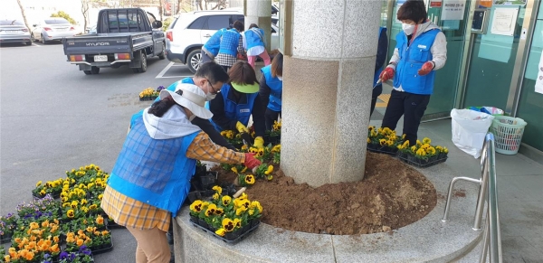 [충청뉴스큐] 코로나19로 지친 시민들을 위해 바르게살기운동 평택시청북읍위원회는 30일 오전 봄꽃을 마을 곳곳에 심었다.