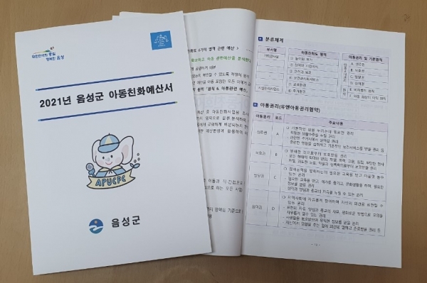 [충청뉴스큐] 충북 음성군은 아동친화도시 조성의 일환으로 군에서 추진하는 아동 관련 예산을 한눈에 확인 할 수 있는 ‘2021년 아동친화예산서’를 제작하고 31일 군 홈페이지에 공개했다.