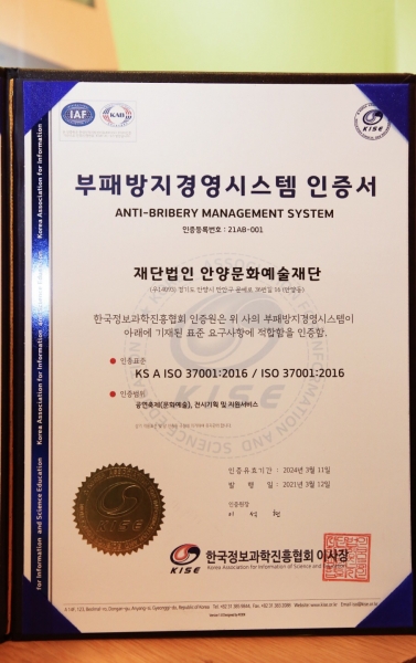 [충청뉴스큐] 안양시 산하기관인 안양문화예술재단이 3종의 ISO인증을 동시 취득했다고 3월 31일 밝혔다.