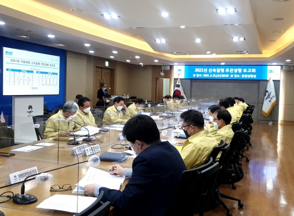 [충청뉴스큐] 평택시는 31일 시청 종합상황실에서 지역경제 활성화를 위한 ‘2021년도 신속집행 보고회’를 개최했다.