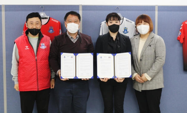 충주아사모와 충주시민축구단은 31일 충주종합운동장 축구단 사무실에서 아사모 정혜민 회장, 신선하 부회장과 축구단 여명구 단장, 안종선 유소년 감독 등 관계자들이 참석한 가운데 업무협약을 체결했다.