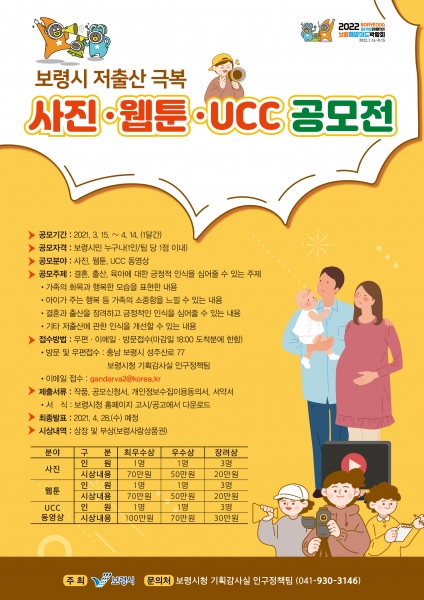 [충청뉴스큐] 보령시는 ‘저출산 극복 사진·웹툰·UCC동영상 공모전’을 오는 4월 14일까지 실시한다고 밝혔다.