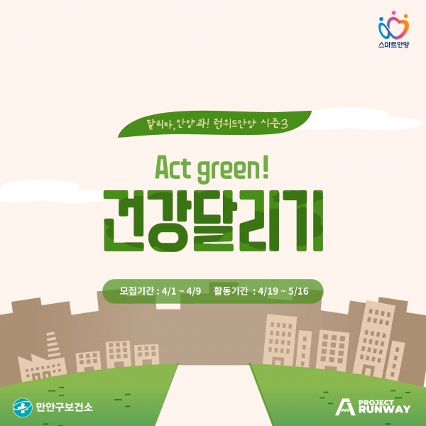 이번 런위드안양 시즌3는 그린뉴딜 정책의 일환으로 건강달리기와 친환경 테마를 접목해 ‘Act Green 건강달리기’라는 타이틀로 진행된다.