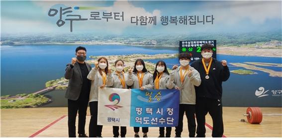 평택시청 직장운동경기부 역도팀은 지난달 27일부터 30일까지 강원도 양구군 용하체육관에서 열린 2021 전국실업역도선수권대회에서 금 1개, 은 3개, 동 7개 등 총 11개의 메달을 획득하면서 우수한 성적을 거뒀다.