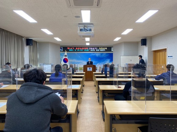 이번 음성농업대학은 코로나19 재확산 방지를 위해 개강식을 생략하고 과정소개와 실시간 온라인 교육의 사전테스트를 진행했다.
