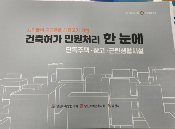 [충청뉴스큐] 당진시는 건축허가에 대한 시민들의 궁금증을 해소하고 관련 정보를 얻을 수 있도록 ‘건축허가 민원처리 한 눈에’ 책자 300부를 발간했다고 6일 밝혔다.
