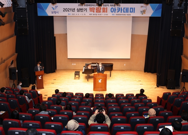 [충청뉴스큐] 보령시는 지난 6일 문화의전당 대강당에서 김동일 시장과 수강생 60명이 참석한 가운데 2022 보령해양머드박람회의 성공적 개최를 위해 ‘박람회 아카데미 개강식’을 가졌다.