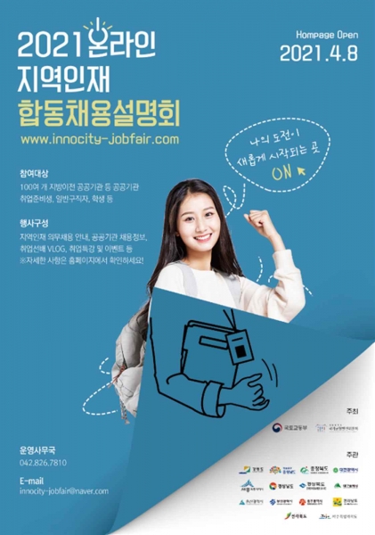 [충청뉴스큐] 대구혁신도시 이전 공공기관은 지역인재 채용 활성화를 위해 4월 8일부터 5월 26일까지 7주간 ‘2021 온라인 지역인재 합동채용설명회’를 개최한다.