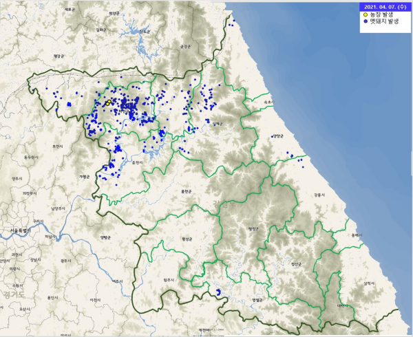 강원도는 차량과 사람의 이동을 통해 질병이 확산될 수 있는 만큼, 상춘객 등이 야생멧돼지 아프리카돼지열병 발생지역 입산을 자제하고 특히 양돈농가에서는 외부인 및 축산차량 통제, 축사 내·외부 소독, 농경지 출입금지 등 차단방역에 철저를 기해 줄 것을 특별히 당부했다.
