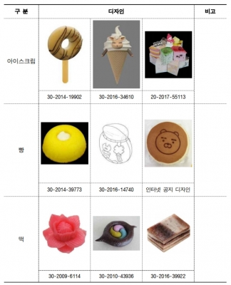 전통식품은 이미 다양한 형태의 디자인이 공지되어 상대적으로 등록된 사례가 적지만, 전통 먹거리에 대한 관심이 늘어나면서, 다양한 모양과 색상을 표현한 떡의 출원이 늘었기 때문으로 보인다.