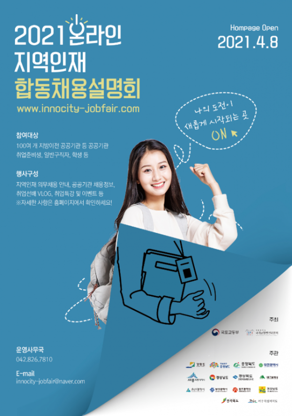 [충청뉴스큐] 부산시는 4월 8일부터 오는 5월 26일까지 7주간 ‘2021 온라인 지역인재 합동채용설명회’를 개최한다고 밝혔다.