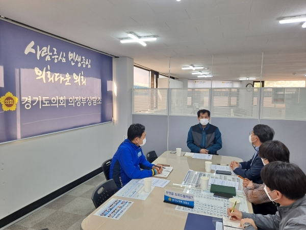 [충청뉴스큐] 경기도의회 기획재정위원회 이영봉도의원은 지난 7일 경기도의회 의정부상담소에서 지역구 국회의원실 관계자와 경기도청 관련부서 공무원 등이 참석한 가운데 경기벤처창업지원센터 신축에 관한 국비 확보 방안 검토 자료에 대한 설명을 듣고 현안 사항에 대해 논의하는 시간을 가졌다.