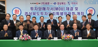 [충청뉴스큐] 경상북도와 구미시는 3일 구미시청에서 이철우 도지사와 장세용 구미시장, ㈜레몬 김효규 대표, 경상북도투자유치특별위원회 위원 등 30여명이 참석한 가운데 ㈜레몬과 나노 멤브레인 제조시설 건립을 위한 투자양해각서를 체결했다.
