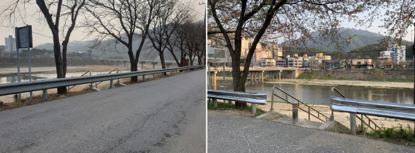 가평군 건설과 관계자는 “가드레일 일부를 개방해 주민 및 관광객이 설치된 계단을 통해 조종천을 이용할 수 있도록 빠른 시일 내로 조치하겠다”고 전했다.