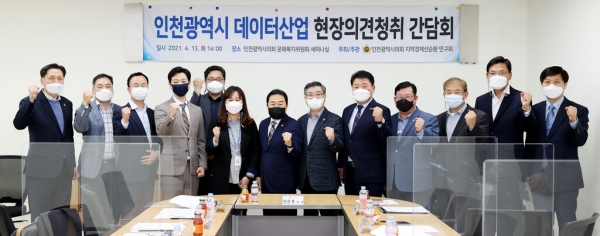 인천시의회 의원연구단체 ‘지역경제선순환연구회’는 최근 문화복지위원회 세미나실에서 신은호 의장을 비롯해 연구회 대표 이병래 의원, 안병배·임동주·김병기 의원, 인천대학교 김훈 교수, 인천시 김하운 경제특보 등 전문가와 인천시 관계 공무원 및 인천테크노파크 관계자 등이 참석한 가운데 ‘인천광역시 데이터산업 현장의견청취 간담회’를 개최했다고 14일 밝혔다.