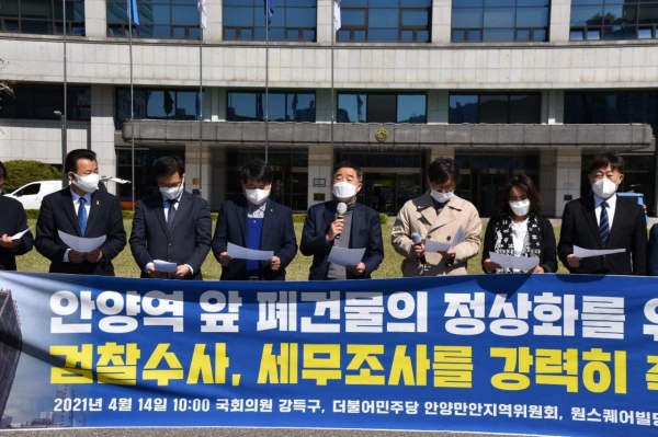 [충청뉴스큐] 국회 교육위원회 강득구 의원 은 14일 오전, 안양시청에서 ‘원스퀘어 빌딩의 정상화를 위한 기자회견’을 개최했다.