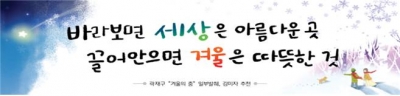 문안 추천자인 김미자 님은 “세상은 바라볼수록 아름다운 곳이고 겨울은 함께할수록 더 따뜻한 계절이라는 의미가 좋아 선택했다.”고 응모 사연을 밝혔다.
