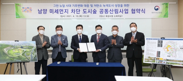 시는 15일 시청에서 북부지방산림청과 오는 2023년까지 19억원을 투입해 도시숲을 조성하는 ‘공동산림사업 협약’을 체결했다.