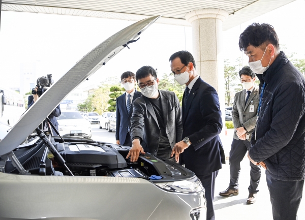 16일 군에 따르면, 미세먼지를 줄이고 친환경차 보급률을 높이려는 정부시책과 수소산업 거점 도시를 육성하려는 군의 정책을 적극 홍보하고자 관용차를 수소전기차로 교체했다고 밝혔다.