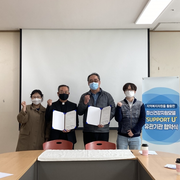 [충청뉴스큐] 천안시 서북구정신건강복지센터는 관내 쌍용종합사회복지관, 천안시노인종합복지관과 지난 15일 지역사회 정신건강지원모델 구축을 위한 ‘서포트 유’ 업무협약을 체결했다고 밝혔다.