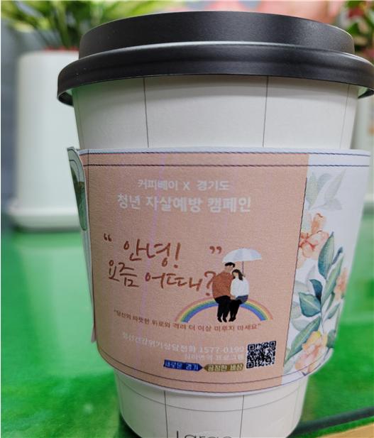 [충청뉴스큐] 경기도가 청년들의 극단적인 선택을 막기 위해 커피전문점 커피베이와 함께 컵홀더에 생명사랑 홍보문구를 넣는 사업을 추진한다.