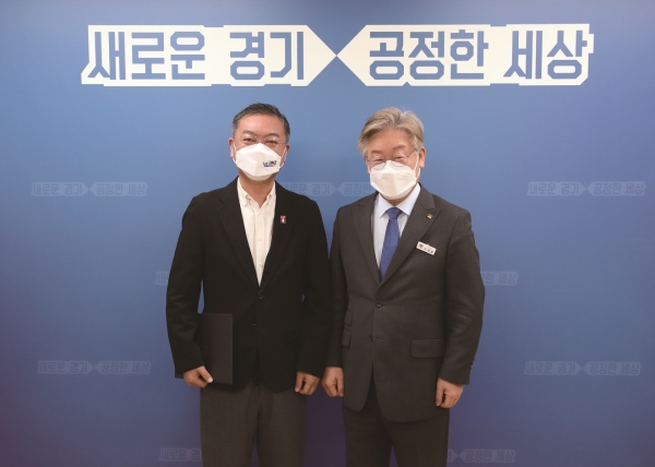 이재명 경기도지사는 16일 경기도청에서 평화예술제의 대내외 인지도 제고를 위한 홍보대사로 배우 김의성에게 위촉장을 수여했다.