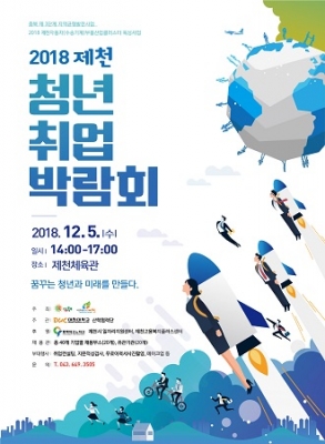 [충청뉴스큐] 구직자에게는 희망일자리를, 구인기업에게는 인력난을 해소하기 위한 ‘2018 제천청년 취업박람회’가 오는 5일 오후 2시부터 제천체육관에서 개최된다.