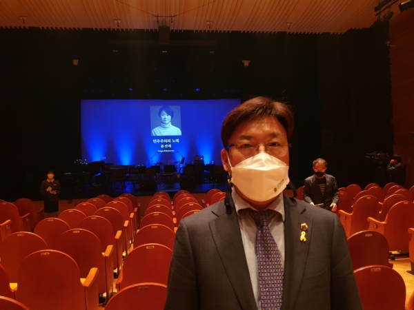 [충청뉴스큐] 경기도의회 문화체육관광위원회 최만식 위원장이 성남아트센터 앙상블시어터에서 열린 ‘민주주의의 노래’ 음원 발매 기념 쇼케이스에 참석해 자리를 빛냈다.