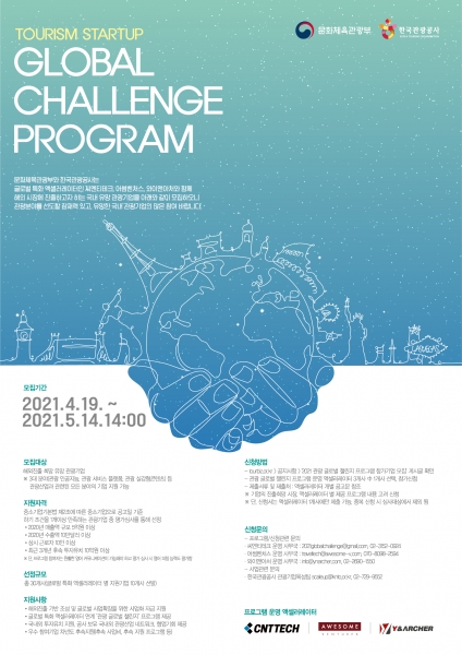 [충청뉴스큐] 문화체육관광부와 한국관광공사는 작년에 이어 차세대 관광산업의 성장동력인 우수 관광기업을 발굴, 육성해 해외진출을 지원하는 ‘관광 글로벌 챌린지 프로그램’에 참여할 기업을 오는 5월 14일까지 공모한다.