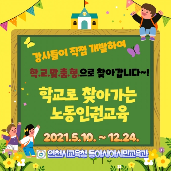 [충청뉴스큐] 인천광역시교육청은 학교 맞춤형 노동인권교육 자료를 개발해 ‘학교로 찾아가는 노동인권교육’을 초등학교까지 확대 운영한다고 밝혔다.